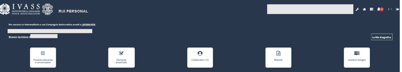Questa è la sezione che troverai una volta effettuato l'accesso nel nuovo portale, profilo Intermediari sezione C e E:
